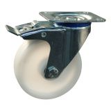 Zwenkwiel met boutgat en rem, kunststof wiel, rvs (4)