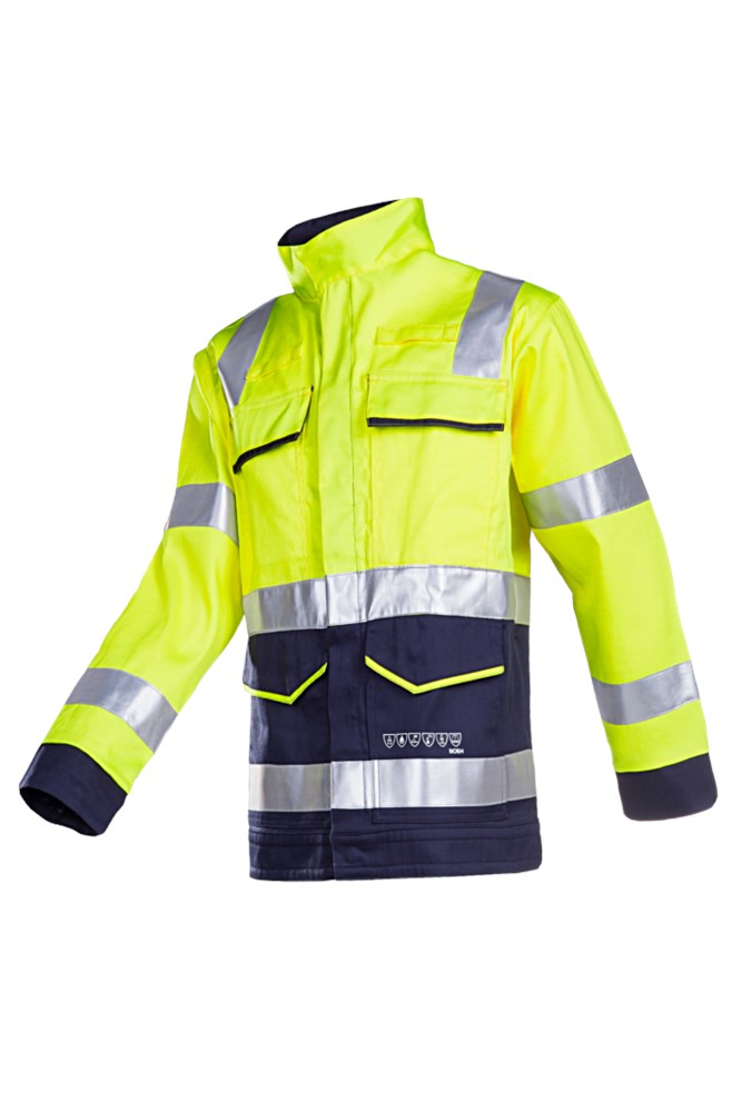 Contacteer onsDeze multifunctionele signalisatieblouson trekt de aandacht: dubbel gestikte reflecterende FR banden, 2 borst- en 2 steekzakken met verborgen drukknoopsluiting en afgewerkt met biesje in contrasterend kleur. De ademende en zeer lichte stof (260 g/m²) met vochtregulerende eigenschappen zorgt voor een aangenaam gevoel terwijl hij u toch uitstekend beschermt tegen hitte en metaalspatten, bovendien is deze lichte ARC-blouson ook antistatisch.