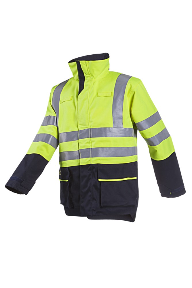 Contacteer onsDe Kelford is een hoogkwalitatieve signalisatie regenblouson met ARC-bescherming. De gelamineerde stof beschermt u tegen weer en wind en ook de gebreide windvangers in de mouwen doen hun werk. De blouson kan ook voorzien worden van een kap die u kan opbergen in de speciaal voorziene opbergzak aan de binnenkant. Deze antistatische regenblouson beschermt u verder niet alleen tegen vlammen en lasvonken, maar ook tegen spatten van chemische producten. De binnenkant van de blouson is eveneens afgewerkt met een vlamvertragende voering voor uw bescherming. Het verlengde rugpand zorgt er tevens voor dat uw rug altijd bedekt is.