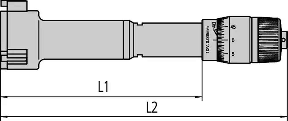Een analoge 3-punts Mitutoyo binnenschroefmaat met titanium gecoate meetpunten. Het 3-punts ontwerp maakt een stabiele meting mogelijk door automatische centrering. De maximale meetdiepte kan indien nodig met 100 mm worden vergroot met behulp van een optionele verlengstang. Ratelstop garandeert herhaalbare meting. Stalen instelringen (optioneel) zijn beschikbaar voor een nauwkeurige afstelling voorafgaand aan de meting.