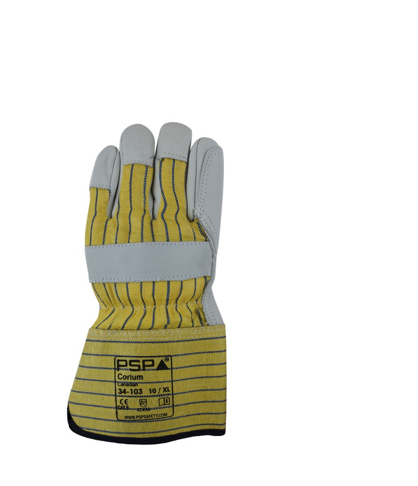 Palm: Rundsplitleder - Rug: Katoen - Kap: Rubber / Katoen