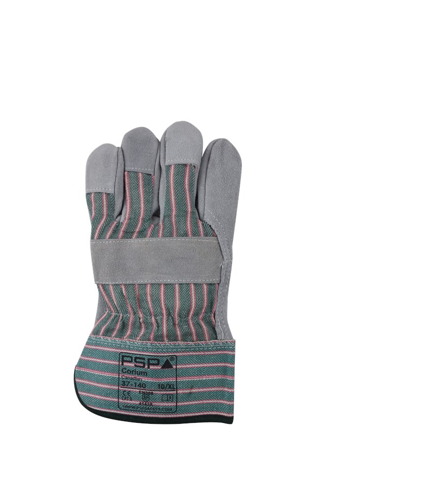 Palm: Rundsplitleder - Rug: Katoen - Kap: Rubber / Katoen