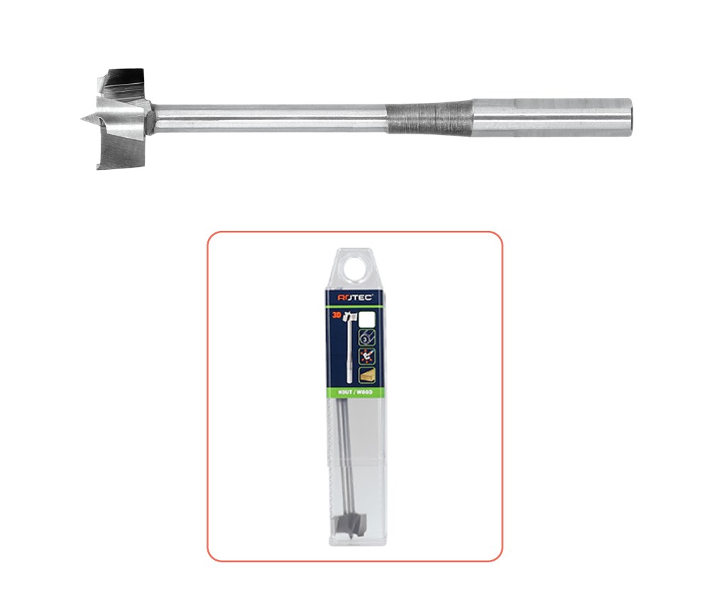 3D-Houtboor vervaardigd uit hoogwaardig SP-staal. De geslepen 3-vlaks schacht voorkomt slippen in de boorkop. De zeer scherp geslepen snijkanten en de in diameter gereduceerde hals maken het mogelijk de boor in alle richtingen te gebruiken.