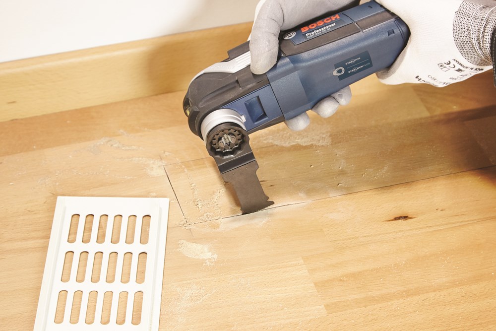 4-delige vloer- en installatieset;Veelzijdige Starlock set voor vloer- en installatiewerk (bijvoorbeeld een deurkozijn op de vloer zagen, laminaat/parket uitsnijden, invallend zagen in gelamineerde panelen of hout, uitsparingen in meubelonderdelen zagen)