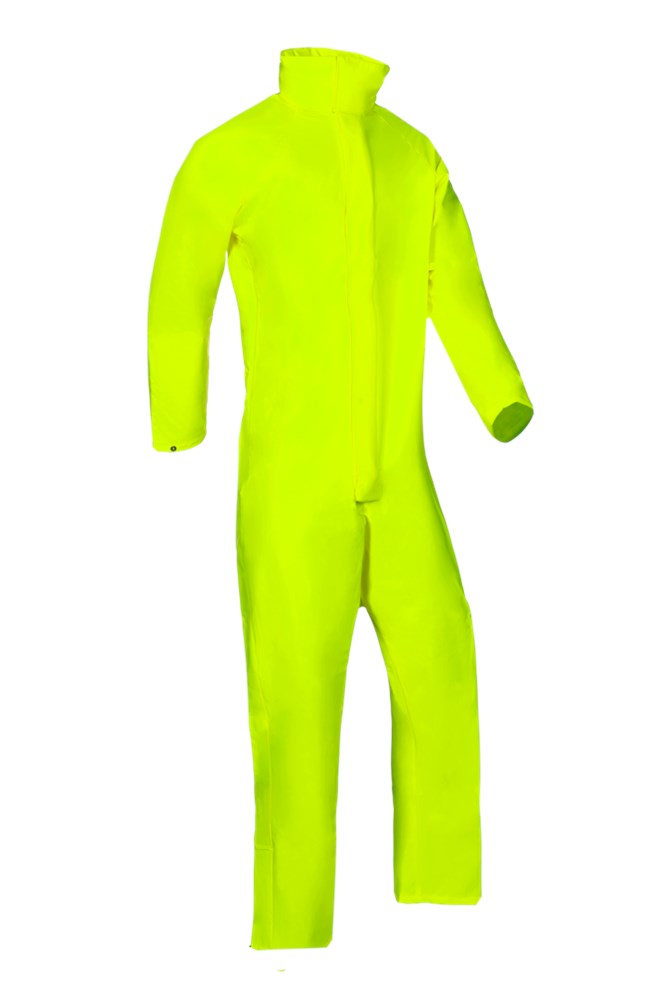 Contacteer onsHoge zichtbaarheid en perfecte wind- en waterdichtheid, dat is wat de fluorescerende Montreal regenoverall u biedt. Deze soepele overall met rechtopstaande kraag, waarin de kap opgeborgen zit, beschermt u bovendien ook tegen vloeibare chemicaliën. Deze duurzame en geluidsarme overall met ritssluiting onder flap en drukknopen, heeft bovendien gebreide windvangers in de mouwen, elastische vernauwing in de rug en mouw- en enkelvernauwing d.m.v. drukknopen.