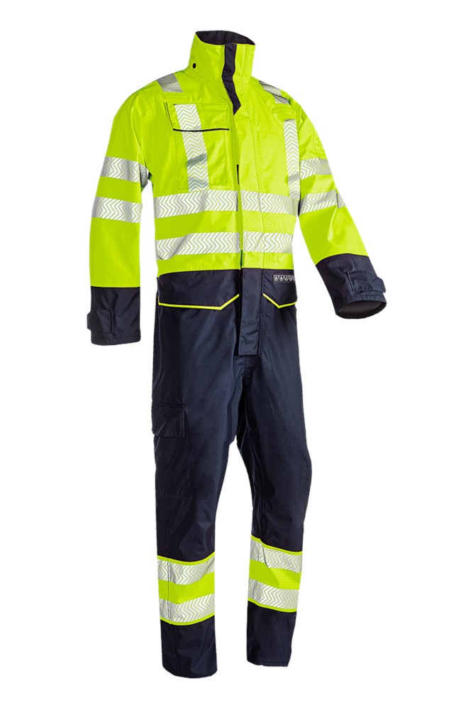 Contacteer onsMoet u koude en regen trotseren in gevaarlijke omstandigheden? Dan is de Bjordall perfect voor u. Dankzij de fluorescerende kleur en de reflecterende banden bent u dag en nacht zichtbaar met deze winteroverall met arc bescherming klasse 2. Opdat de regen niet zou kunnen binnendringen zijn de 6 zakken aan de buitenkant allemaal bedekt met een klep, net zoals de ritsen aan de voorkant en aan de onderbenen. De kap, apart te verkrijgen, kan vastgemaakt worden aan de rechtopstaande kraag of kan opgeborgen worden in de binnenzak. De vlamvertragende katoenen voering en de 3-laagse buitenstof beschermen uitstekend tegen hitte, vlammen en lasvonken.