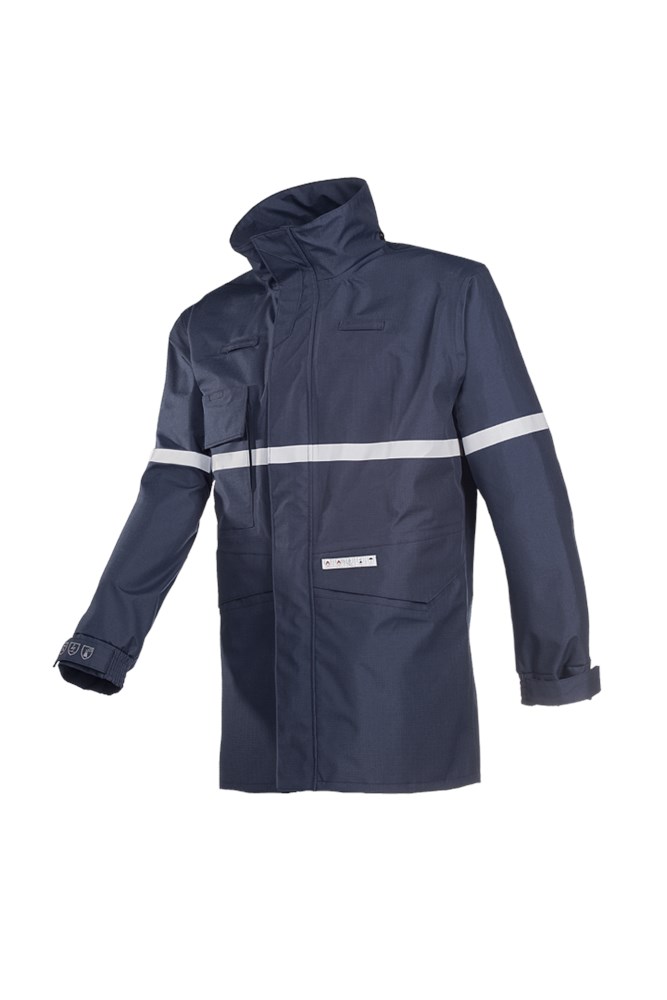 Contacteer onsWaterafstotend, winddicht, vlamvertragend, antistatisch, scheurbestendig, licht en comfortabel: maak kennis met de vele troeven van de Durant. Deze regenjas in Siopor® Excell houdt elk zuchtje wind tegen, mede door de elastische polsbanden die vernauwd kunnen worden en door de rechtopstaande kraag die overigens voorzien kan worden van een kap. Met 1 borstzak, 1 Napoleonzak, 2 zakken aan de buitenkant en 2 binnenin is er zeker voldoende opbergruimte. De smalle strook reflecterende FR tape en de 2 lussen voor gasdetectiemeters maken het af.