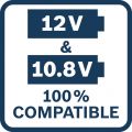 Met een laadstroom van 2,1 A verandert deze Bosch 10,8V- en 12V-accu's in USB-powerbanks. Het compacte ontwerp en een handige metalen riemclip maken het mogelijk om vermogensreserves op elk moment bij de hand te hebben. Door de coaxstekker kan Bosch verwarmbare werkkleding van stroom worden voorzien voor warmte tijdens het werk of tijdens andere outdooractiviteiten bij koud weer.