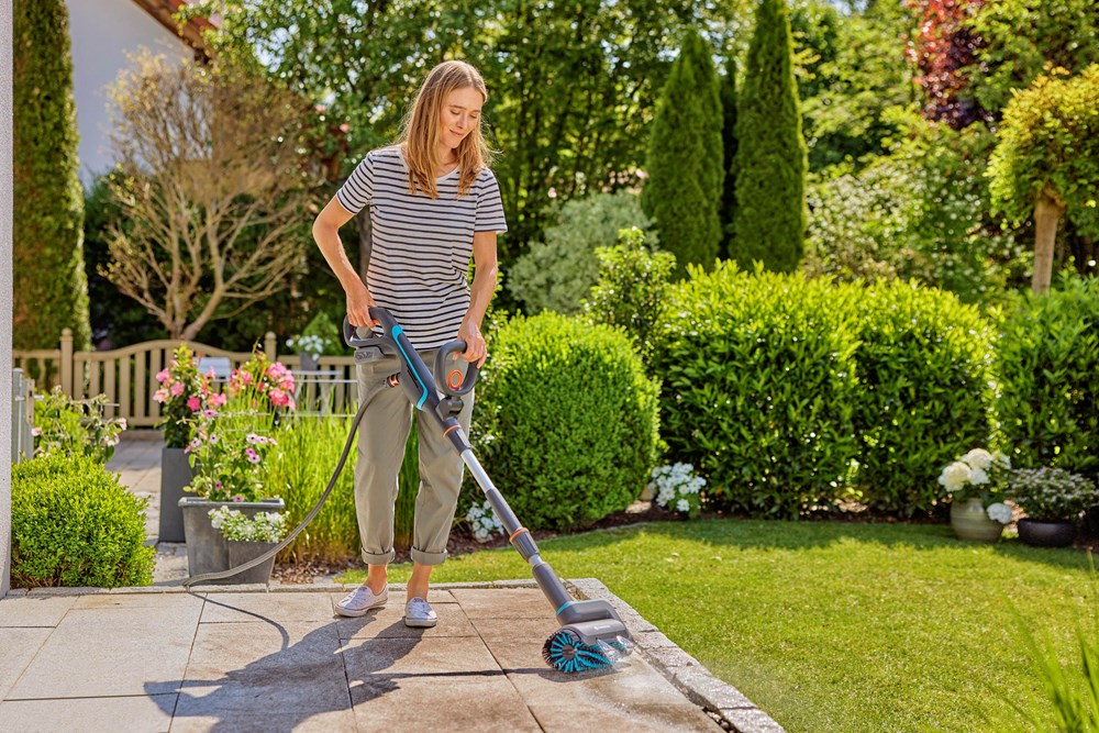 Contacteer onsGARDENA accu-multireiniger AquaBrush Patio Solo voor een moeiteloze reiniging van hout, WPU, steen, terrassen, vlonders en ongelijkmatige vlakken. 1 POWER FOR ALL ALLIANCE accu voor meer dan 100 gereedschappen van topmerken voor huis en tuin De accu's maken deel uit van het 18V POWER FOR ALL accusysteem en passen in meer dan 100 gereedschappen voor huis en tuin van de topmerken binnen de Alliantie. Je hebt niet voor elk product een aparte accu nodig. Dat is goed voor je portemonnee én het milieu. Met de accu-multireiniger maak je alles moeiteloos schoon Maak moeiteloos schoon met onze innovatieve AquaBrush Patio Solo multireiniger. De reiniger werkt op accu. Met een simpele druk op de knop start je een constante watertoevoer die de roterende borstel in beweging zet voor een gemakkelijke reiniging. Zo wordt al het werk in één stap gedaan en maakt het lastige snoeren, handenarbeid of extra gereedschap overbodig. Let op: de batterij en oplader zijn niet inbegrepen bij deze set. Geoptimaliseerd borstelprofiel: ideaal om terrassen en houten vlonders schoon te maken De meegeleverde rolborstel met geoptimaliseerd profiel is speciaal ontworpen voor het reinigen van hout, WPU en steen. Ideaal voor kwetsbare houten vlonders, patio's, trappen en terrassen. De borstel komt in groeven en spleten voor een grondige en gelijkmatige reiniging. Er wordt ook een verlengbuis meegeleverd voor ergonomisch werken. Dit dynamische duo zorgt ervoor dat elk plekje buiten de aandacht krijgt die het verdient. Waterregeling Onze innovatieve multireiniger is ontworpen voor een spaarzaam gebruik van water. De reiniger heeft een 3-traps systeem voor de waterregeling voor een grondige, maar vooral efficiënte reiniging. Voor nog meer gebruiksgemak zit de slangaansluiting op de handgreep. Even op de knop drukken en het water stroomt door de binnenbuis die een directe slangverbinding met de borstel overbodig maakt. Ergonomische en verstelbare handgreep De multireiniger met ergonomische en verstelbare handgreep is ontworpen voor een maximaal gebruiksgemak. Bij alle schoonmaakklussen kun je de handgreep steeds eenvoudig aanpassen aan de gewenste werkhouding voor minder belasting en een comfortabele grip. De ergonomische en verstelbare handgreep biedt optimaal bedieningsgemak om makkelijker te werken. De garantie van 3 jaar waarborgt de hoge kwaliteit Na registratie op gardena.com/registration binnen 3 maanden na aankoop. Batterijen en opladers uitgesloten. Garantievoorwaarden lees je op gardena.com/warranty.