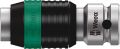 Verbindingselement van vierkant naar zeskant. Voor 1/4" zeskant-bits conform DIN ISO 1173-C 6,3 en E 6,3 en Wera aansluiting serie 1 en 4. Met snelwisselfunctie.