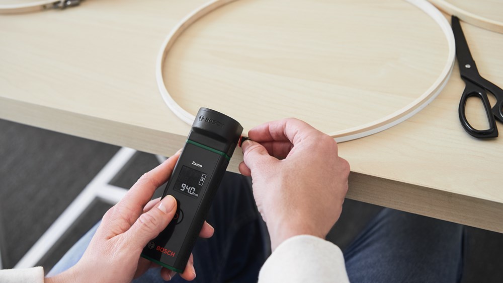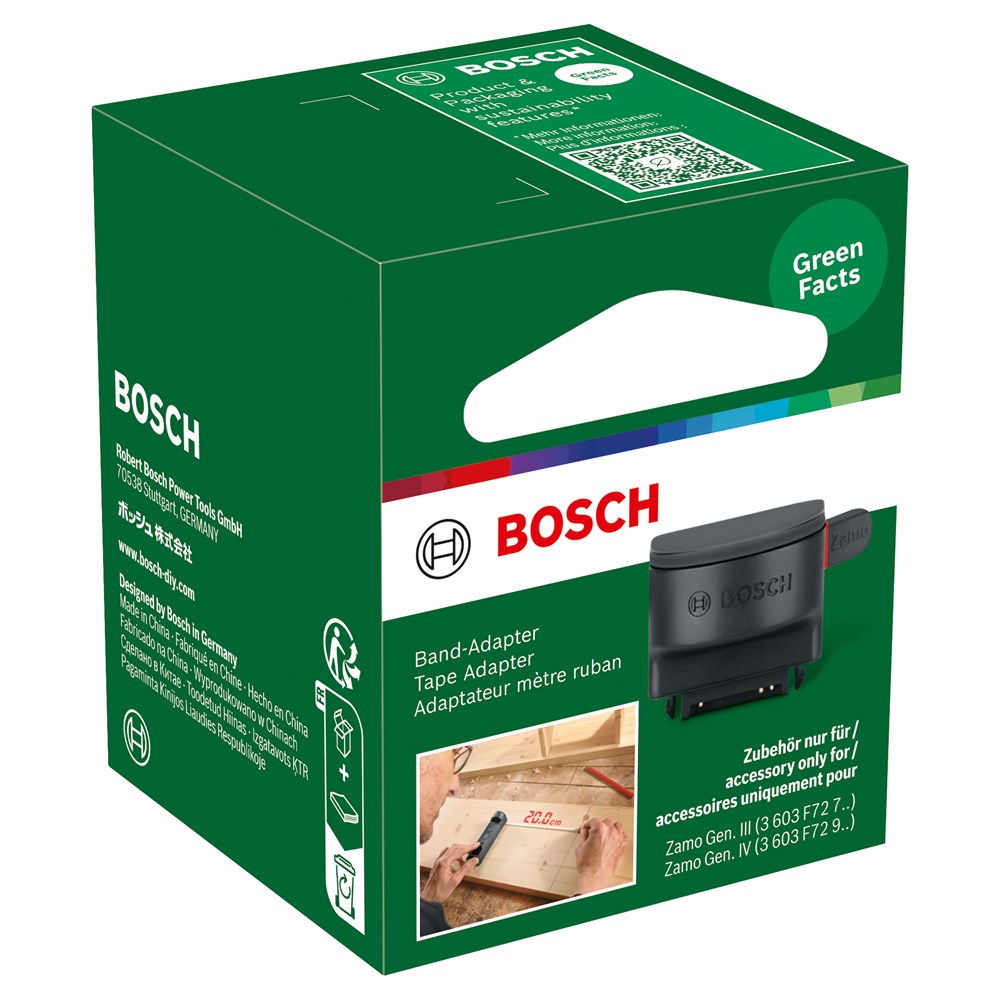 Gemakkelijk te gebruiken lintadapter levert accurate metingen van afstanden en objecten. Met de praktische en compacte lintadapter meet de Zamo afstanden en omtrekken tot maximaal 1,5 meter. Hij kan klussen aanpakken zoals het opmeten van fotolijsten evenals lichaamsomtrekken voor het ontwerpen of vermaken van kleding. Hij is ook ideaal voor het opmeten van meubels om stoflengtes te bepalen en voor het meten van planken voor een groot aantal klussen. Voor het uitbreiden van de toepassingen van de laserafstandsmeter Zamo kan deze met een klik worden bevestigd, zodat snelle en nauwkeurige resultaten worden geleverd bij nog meer soorten klussen.