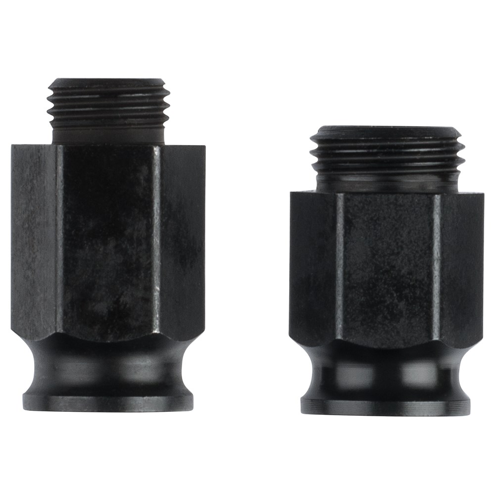 De adaptermoerenset voor de Power Change Plus-assen bestaat uit 6 delen: 2 adapters voor gatzagen met een diameter van 14 - 30 mm (1/2” - 20UNF schroefdraad) en 4 adapters voor gatzagen met een diameter van 32 - 210 mm (5/8” - 18UNF schroefdraad).