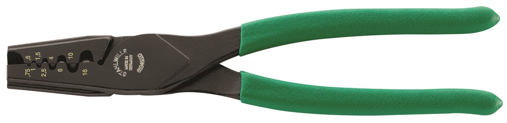 Contacteer onsMet halfrond-profiel, voor het betrouwbaar persen van aderhulzen DIN 46228, 8 zeer diepe dwarsgroeven met conische zijden, persen van de huls in één bewerking.
