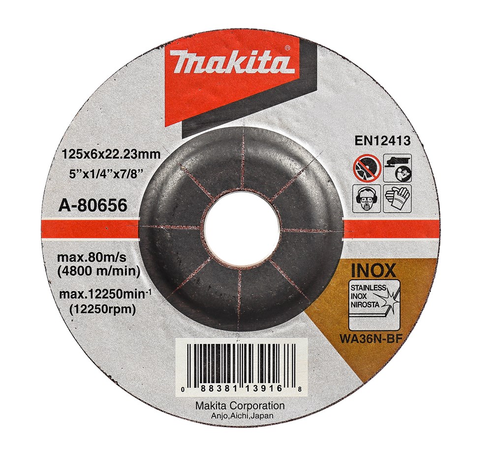 Contacteer onsMakita Artikelnummer: A-80656 SLIJPSCHIJF 125 X 6 MM. WA36N. METAAL. ROESTVRIJ