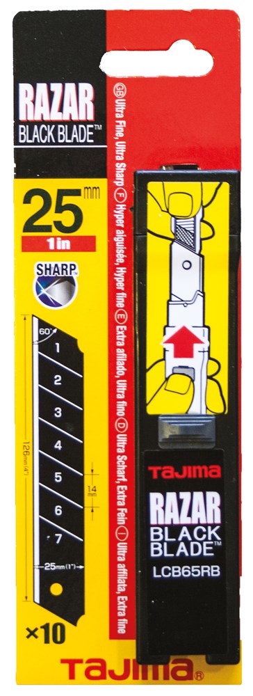 Contacteer onsTAJIMA Artikelnummer: PPTJ LCB65RBC AFBREEKMESSEN 25 X 0.7 MM RAZAR BLACK BLADE - PER 10 ST