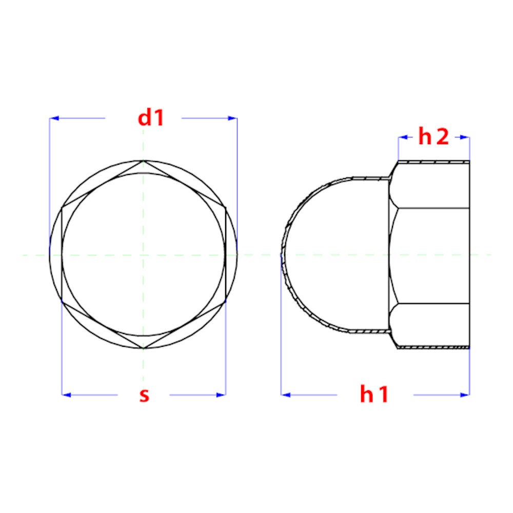 Contacteer onsPGB-FASTENERS Artikelnummer: ADKZM8N100RAL9005 AFDEKKAP V. ZESKANT MOER M8 SW13/R9005