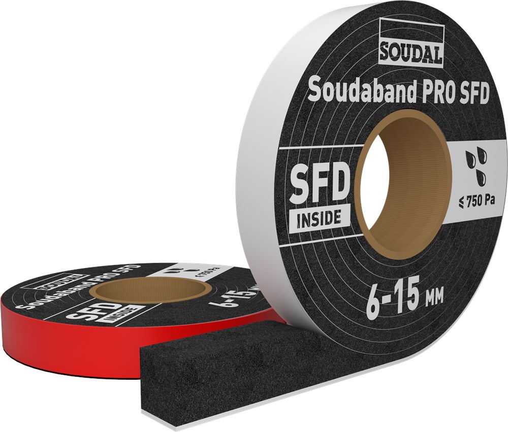 Contacteer onsSoudaband PRO SFD is een multifunctionele voorgecomprimeerde voegafdichtingsband, die voldoet aan DIN 18542:2020 klasse BG1. Deze premium voegafdichtingsband is speciaal ontwikkeld voor het afdichten van ramen met een kozijndiepte tot 45 mm en ramen met een onder- of vensterbankprofiel. Soudaband PRO SFD combineert een slagregendichtheid tot 750 Pa met goede thermische en akoestische isolatie-eigenschappen.