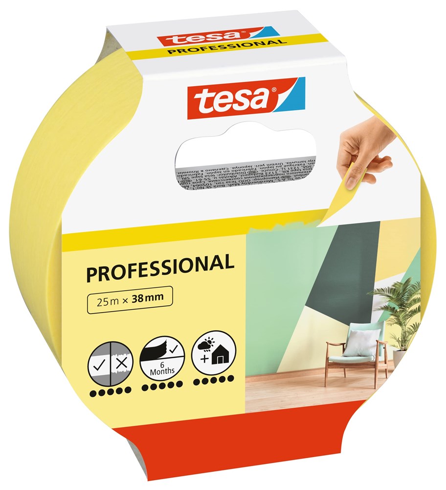 Contacteer onstesa® Artikelnummer: 56271-00000-02 MASKING TAPE PROFESSIONAL. 25MTR X 38MM GEEL