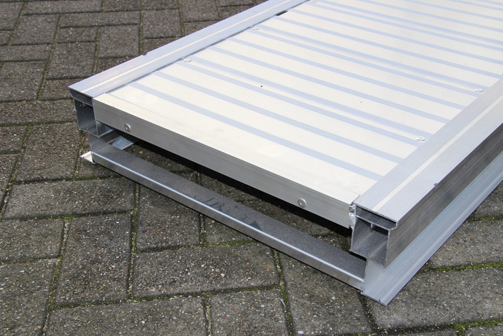 Alle aluminium loopbruggen voldoen aan de minimale, wettelijke belasting van 150 kg per m2 en zijn geheel conform de HD 1004 – P6.