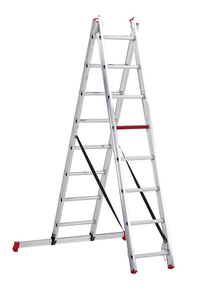 De unieke D-sport zit door de speciale vorm stevig op zijn plek. Bovendien geeft het brede oppervlak je meer stacomfort en met de stabiliteitsbalk sta je extra stabiel. De opsteekhaak met veiligheidspal voorkomt dat je ladder ongewild inschuift. Dat is wel zo veilig.