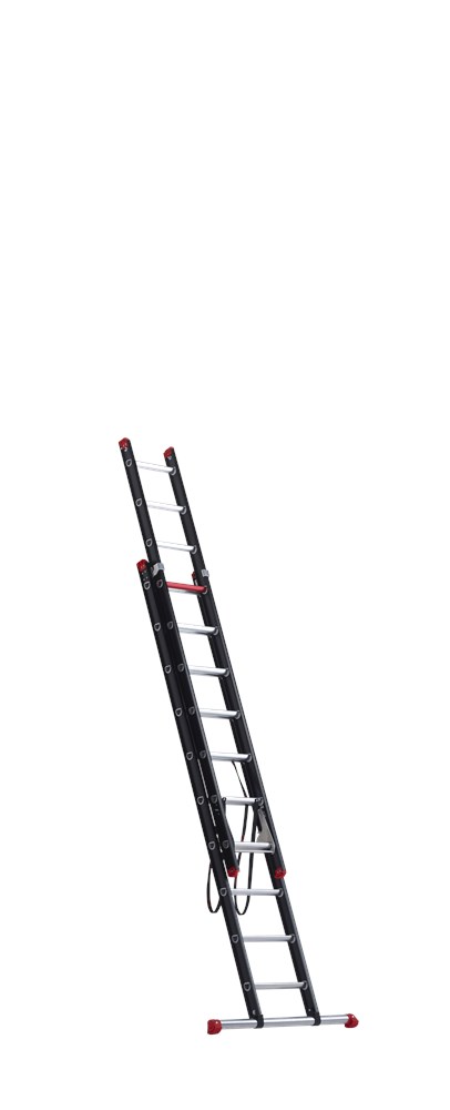 De Mounter reformladder is verkrijgbaar in een 2- en 3-delige uitvoering, in uiteenlopende lengtes tot wel 9,35 meter. De 3-delige reformladder schuif je ook nog eens makkelijk uit door de toprollen.