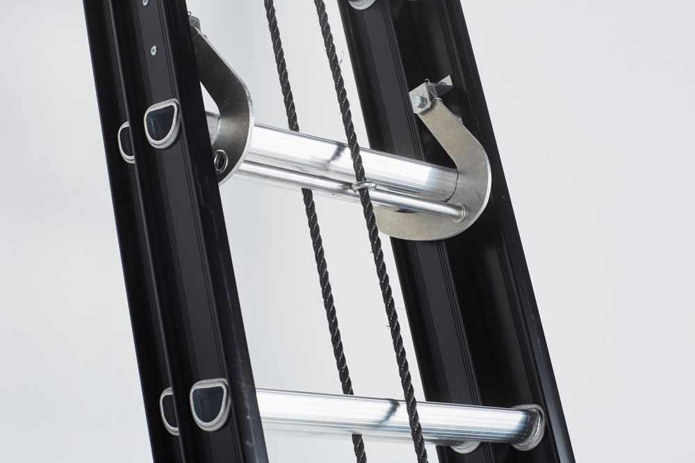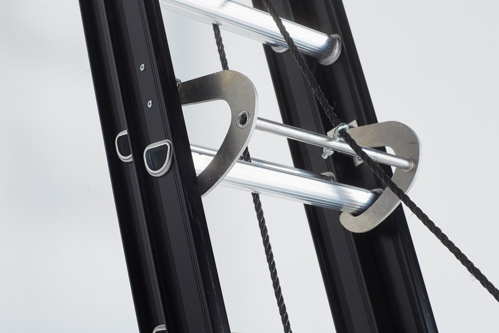 Eenvoudig naar grote hoogtesDoor het touwoptreksysteem breng je de schuifladder met een simpele beweging tot grote hoogte. Hij rolt bovendien ook gemakkelijk uit tegen de gevel door de toprollen aan de uiteinden.