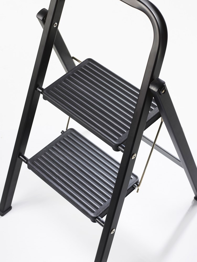 De 2-treeds Giant Total Black. Een compact huishoudtrapjeDe Giant Total Black is de ‘kleinste’ uit de familie trappen. Ideaal wanneer je net even een stapje hoger moet. Deze huishoudtrap is degelijk, duurzaam en uiterst compact op te bergen. En daarmee onmisbaar bij alle kleine klussen in het huis.