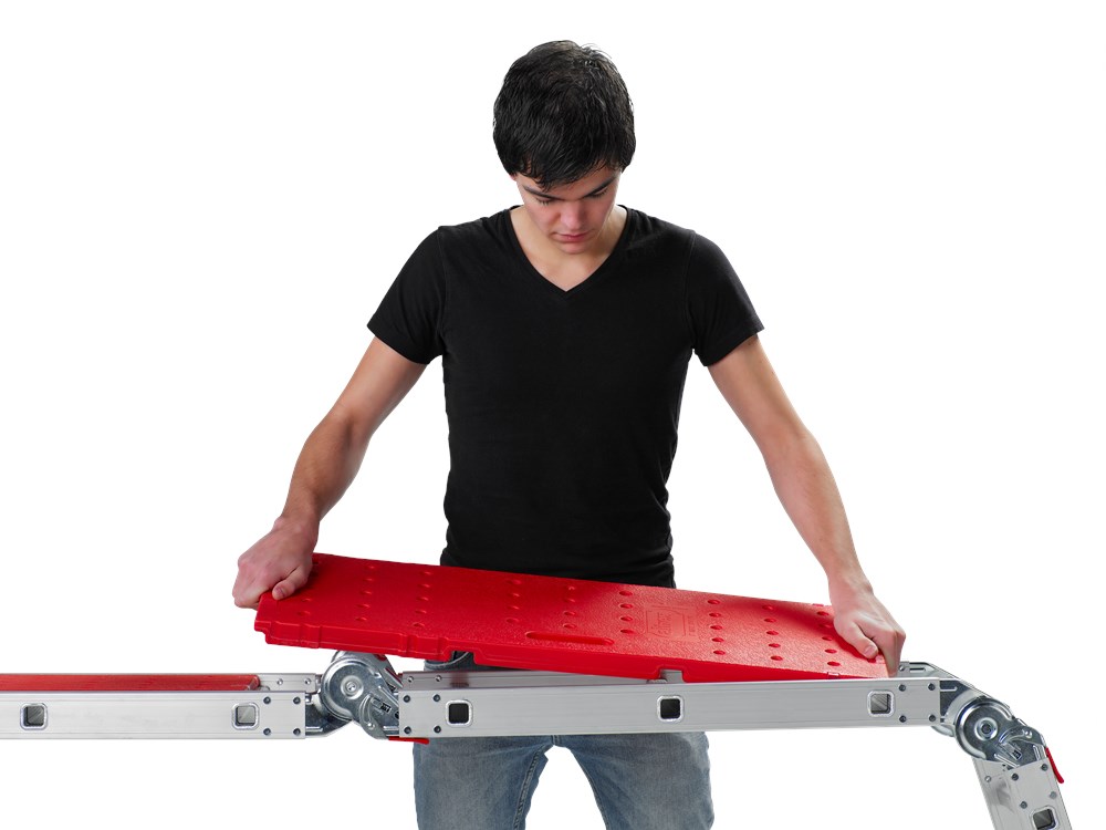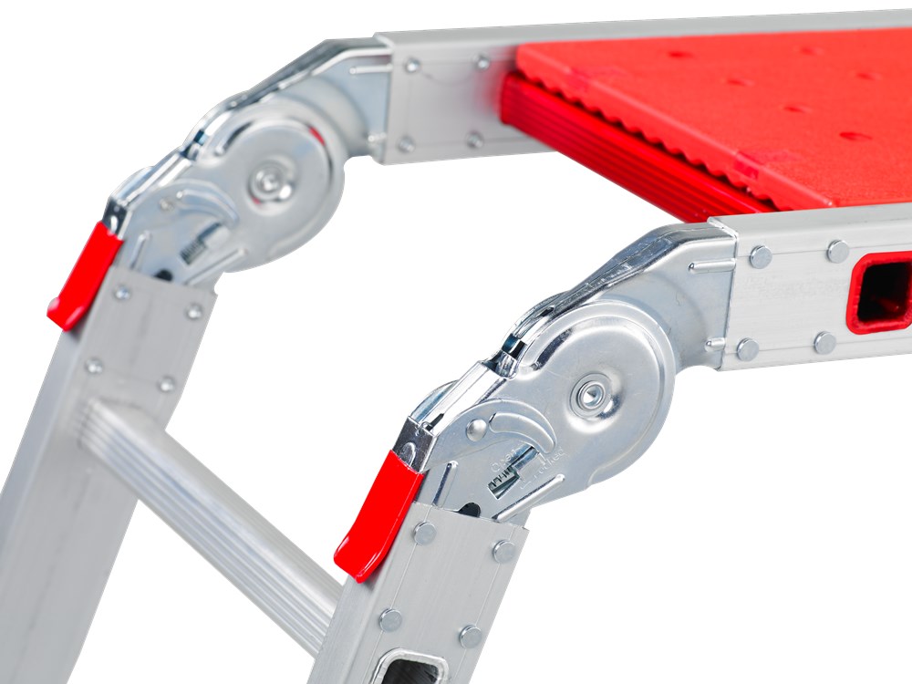 Multifunctioneel en veelzijdigDe Varitrex Plus zet je eenvoudig is een ander stand: A-stand, ladderstand, platformstand én muurafhoudstand.