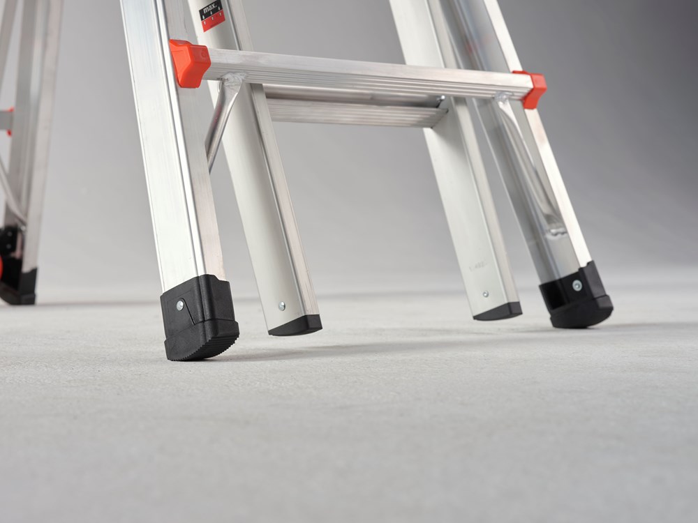 Door het horizontale stavlak met antislip profiel werk je comfortabel. Met de uitgebogen bomen met sta je altijd stevig en stabiel. Bovendien borgt het zelfblokkerend scharnier de vouwladder in elke positie. Veiligheid gegarandeerd dus!