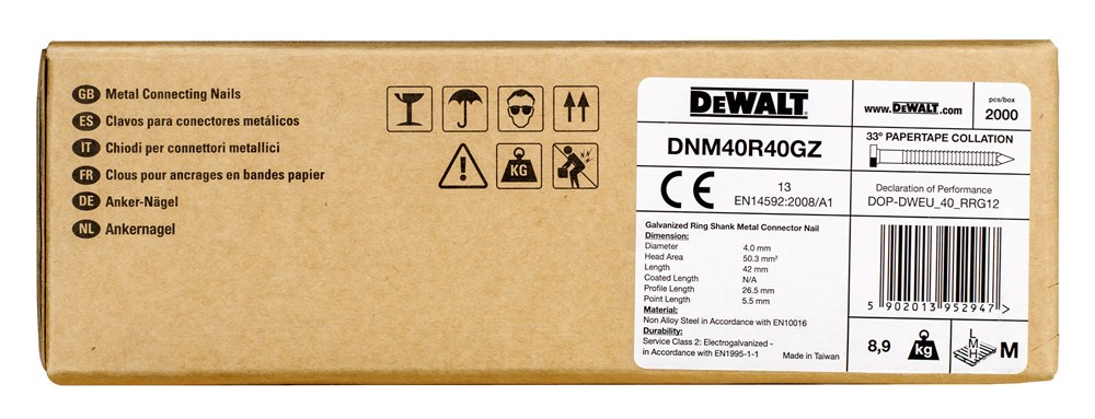 Contacteer onsDeWALT Artikelnummer: DNM40R40GZ [DNM] BATANKERNAGELS 4.04-40 GERINGD GEGALVANISEERD 2M