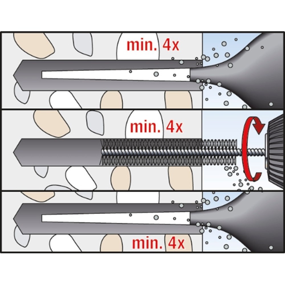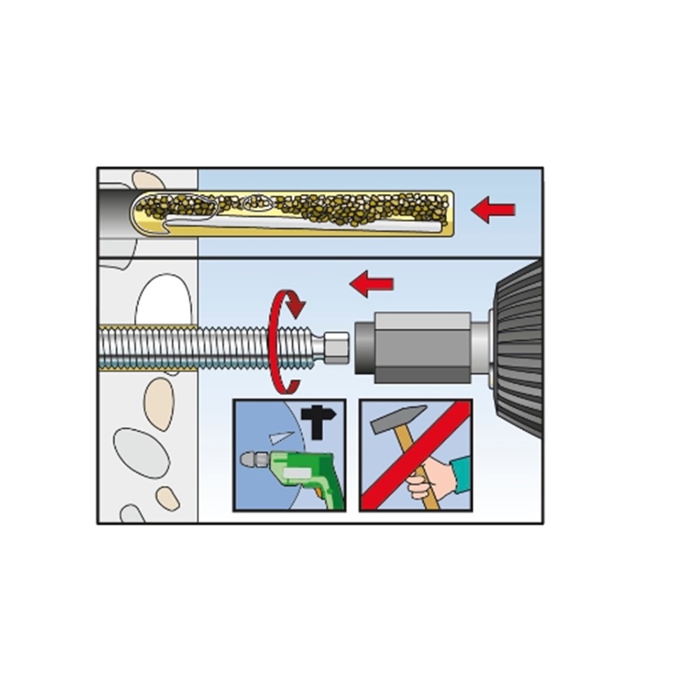 Contacteer onsDe fischer Draadstang RG M is van gegalvaniseerd staal in de staalkwaliteit 5.8 gemaakt. De draadstang is een systeemtoebehoren voor de diverse fischer mortelpatronen of injectiemortel. Voor afzonderlijke bevestigingen is het gebruik van de vooraf geportioneerde mortelpatronen bijzonder efficiënt. Bij de montage met de mortelpatroon wordt de fischer Draadstang RG M met behulp van een boorhamer draaiend-tikkend aangebracht. Tijdens het plaatsen wordt de mortelpatroon kapotgemaakt, gemengd en de mortelmassa geactiveerd. Bij de montage met de injectiemortel wordt de ankerstang handmatig door middel van lichte draaibewegingen in het boorgat geschoven. Het systeem is bijzonder geschikt voor een efficiënte bevestiging van machines, staalconstructies en steunpoten binnenshuis.