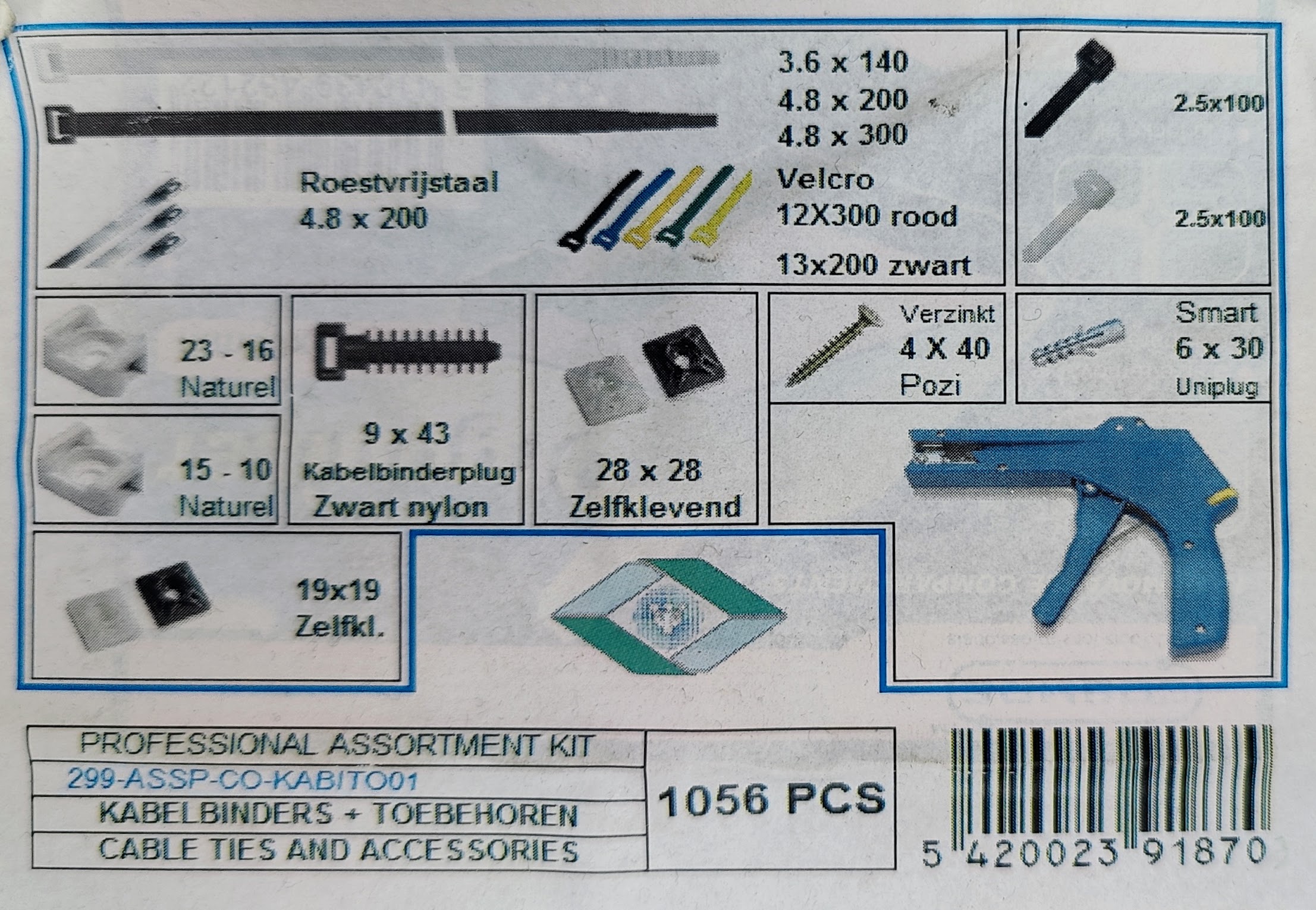 Contacteer onsMaes Vakhandel Artikelnummer: NYASS1056 ASS. KABELBINDERS 1056 DELIG
