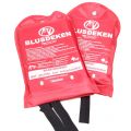 Contacteer onsEnkellaags blusdeken verpakt in kunststof zak, voor het blussen van kleine beginnende (kleding)branden.