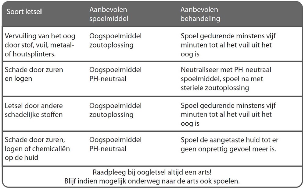 Contacteer onsOogspoelflessen met een steriele zoutoplossing zijn bedoeld om de ogen schoon te spoelen bij mechanisch letsel zoals vuil, stof, metaal- of houtsplinters en letsels door chemische stoffen met uitzondering van zuren en logen. Deze zoutoplossing komt overeen met het natuurlijke zoutgehalte van het oog. Een flacon van 500 ml is voldoende om ongeveer vijf minuten te kunnen spoelen.