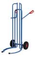 Contacteer onsGelaste stalen buis, gepoedercoat blauw RAL 5007, robuuste bovenlaagbescherming. Wielen van luchtbanden, naaf met rollager. Door middel van de handgrepen te bedienen kunt u met de gespreide opening bandenstapels opnemen of afzetten. De aanlooprollen aan het uiteinde van de gespreide opname ondersteunen en vergemakkelijken het proces. Geschikt voor wielen van 450 tot 860 mm Ø. Tot 8 banden of wielen mogelijk.