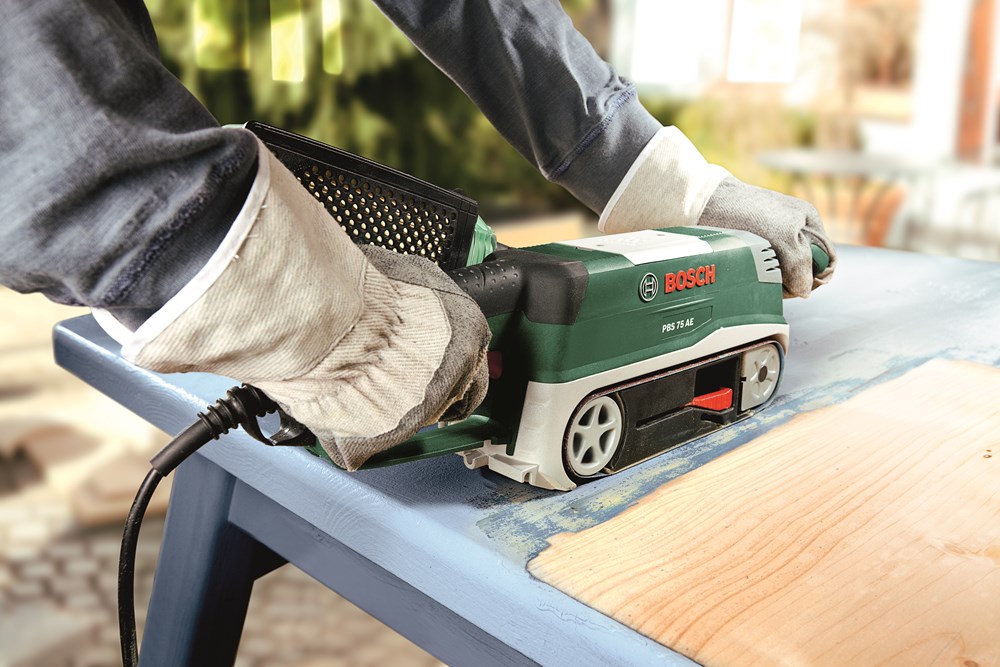 Ontdek de krachtige en robuuste bandschuurmachine PBS 75 AE Set van Bosch! Hoge afname bij diverse toepassingen.