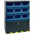 Contacteer onsStevige plaatstalen gelakte kast met afsluitbare onderbak. Compleet geleverd met kunststof magazijnbakken in de kleur petrol blue/avio. Incl. 9 bakken type 20704 afm.: 622 x 347 x 800 mm