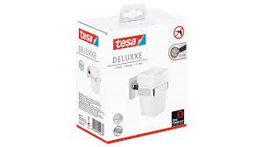 Contacteer onsTandpasta en tandenborstels hebben een prachtige opbergruimte met de hoekige tesa® Deluxxe bekerhouder. De tandenborstels verspreiden zich op natuurlijke wijze zonder elkaar aan te raken dankzij de 4 hoeken. De matglazen beker en het glanzend verchroomde metaal van de drager zijn verfijnd en mooi. Hij wordt geplaatst met een sterke zelfklevende oplossing in plaats van door te boren. Hierdoor blijven muren en tegels intact. De lijm moet 12 uur drogen. Hij kan zonder lijmresten worden verwijderd en elders worden hergebruikt met adapter BK20. tesa.Power.Kit Glue: Let op! Bij gebruik kunnen gevaarlijke inhaleerbare stofdeeltjes worden gevormd. Stof niet inademen.