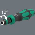Bithandhouder met intuïtief bedienbare ratelfunctie. Het geïntegreerde ratelmechanisme met fijne vertanding (36 tanden/terughaalhoek 10°) vereenvoudigt en versnelt het schroeven doordat er niet telkens opnieuw hoeft te worden aangezet. Heen-en-weer draaien maakt sneller werken mogelijk. Het volledig in de handgreep geïntegreerde ratelmechanisme maakt handig en moeiteloos werken mogelijk. Ergonomisch omschakelen van links naar rechts of naar 0-stand. Kraftform Plus handgreep om ergonomisch verantwoord te kunnen werken en blaren en schuurplekken te voorkomen. Magnetische bithouder geschikt voor plaatsing van bits met 1/4" buitenzeskantaandrijving conform DIN ISO 1173-C 6,3 en E 6,3 (ISO 1173). De kop met Rapidaptor snelwisselfunctie maakt razendsnel wisselen van bits mogelijk zonder extra gereedschap. De krachtige permanente magneet houdt de bits muurvast in het gereedschap.