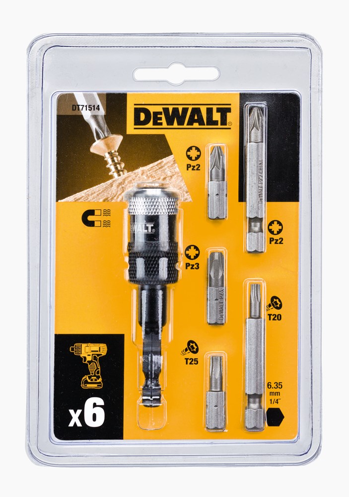 Contacteer onsDeWALT Artikelnummer: DT71514-QZ IMPACT COMPACT RAPID SCHROEFBITADAPTER + BITS