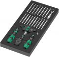 Duurzaam schuimrubberen inzetstuk; 2-kleurig om ontbrekende onderdelen snel te herkennen; geschikt voor de Tool Rebel werkplaatswagen. 1 bithandhouder 838 RA-R M met ratelfunctie en Rapidaptor snelwisselfunctie; 1 bithandhouder met T-greep 416 RA met ratelfunctie en Rapidaptor snelwisselfunctie; 1 bithandhouder 816 R met Rapidaptor snelwisselfunctie, 1 Zyklop Mini bitratel 8001 A, alle bithandhouder en de Mini bitratel voor 1/4" bits; 18 taai-harde bits (1/4", 89 mm lang), 1 adapter 870/1 (1/4" buitenzeskant naar 1/4" buitenvierkant; 25 mm lang); 1 magnetiseerhulp 9500 voor het magnetiseren en demagnetiseren van de punten van de gereedschappen.