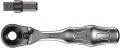 De Wera bit-ratel. Eenvoudig te bedienen, zelfs met 1 hand op lastige schroeflocaties. Smeedijzeren uitvoering. Fijnvertand mechaniek (60 tanden) voor een kleine terughaalhoek van 6° voor nauwkeurig werken. Het geribde wieltje maakt snel schroeven op lastige schroeflocaties mogelijk, als geen ratel kan worden gebruikt. Eenvoudige links/rechts-omschakeling. Ergonomisch gevormde ratelkop en -hendel. Voor 1/4" bit- en dopopname.