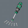 Het Wera Compact-gereedschap kan zowel handmatig als machinaal worden gebruikt. Het handgreep/wisselkling-systeem in compact formaat met verschillende klingpunten compact verpakt biedt de gebruiker mobiliteit en flexibiliteit. Geschikt voor bits met 1/4" buitenzeskant-aandrijving conform DIN ISO 1173-C 6,3 en E 6,3 (ISO 1173) en Wera aansluiting serie 1 en 4. Met verbindingselement, bajonet, Rapidaptor-technologie. Kraftform-handgreep met wegrolbescherming, meerdelig voor zo optimaal mogelijk ergonomisch verantwoord schroeven. Geïntegreerde houder voor opbergen van bits. Zo vervangt deze set een 6-delige schroevendraaierset en reduceert de vereiste uitrusting tot een minimum. De in de handgreep verzinkbare bajonetkling met snelwisselfunctie maakt een snelle handbediening mogelijk, ook op plekken waar weinig ruimte is, met ingetrokken kling. Om de kling uit te klappen, hoeft slechts de vergrendelhuls te worden bediend. De bajonethouder is nu weer te gebruiken als volwaardige schroevendraaier. De bajonetkling kan worden verwijderd en worden toegepast als machine-adapter of in de uitgangspositie terug worden gezet. Met handig riemetui.