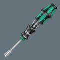 Wera Kompakt-gereedschap met meerdelige Kraftform-handgreep voor snel en uiterst ergonomisch schroeven. In de handgreep geïntegreerde bit-houder, waarin 6 bits kunnen worden opgeborgen. De bajonet-kling kan bij schroeven op plekken waar weinig plaats is, worden ingeklapt. Voor machinaal gebruik kan de kling uit de greep worden genomen. De veerring en de krachtige magneet zorgen ervoor dat de bits goed blijven zitten.