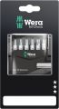 6 Wera TORX® bits, overzichtelijk en compact gerangschikt in handige Bit-Check. Extreem harde Wera bits voor binnenzeskant-schroeven, voor universeel gebruik. 1 universele houder 893/4/1 K voor opname in de schroefmachine of in de boorkop van de elektronisch geregelde boormachine.