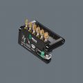 Bits met minuscule diamantdeeltjes op bitpunt. Deze zorgen voor een veilige grip op de schroef, verkleinen de vereiste aandrukkracht en reduceren het risico op wegglijden. BiTorsion-bits met torsiezone, waarin bij belastingspieken kinetische energie wordt afgeleid. Met zachte BiTorsion-zone om torderen van de bit-punt bij hoge belastingen te voorkomen. Hierdoor wordt de levensduur van het product aanzienlijk hoger. Voorzien van Rapidaptor-technologie, om de bits te kunnen plaatsen zonder daartoe de huls te moeten bedienen. Om de bits weer te verwijderen, hoeft u de huls slechts naar voren te schuiven - zo kunt u bits zelfs met 1 hand razendsnel wisselen. Voor plaatsing in de schroefboormachine of in boorkop van een elektronisch geregelde boormachine. De meerdelige Bit-Check overtuigt door het lage gewicht en uitstekende compactheid. Daarbij zorgt het zachte materiaal in het onderste gedeelte van de Bit-Check voor een betere houvast voor de bits en maakt tegelijk het uitnemen daarvan makkelijker. Het profiel en het formaat van de bits zijn gemakkelijk te herkennen dankzij de Wera 'Take it easy'-Toolfinder met kleurcodering en duidelijk zichtbare beschrijving.