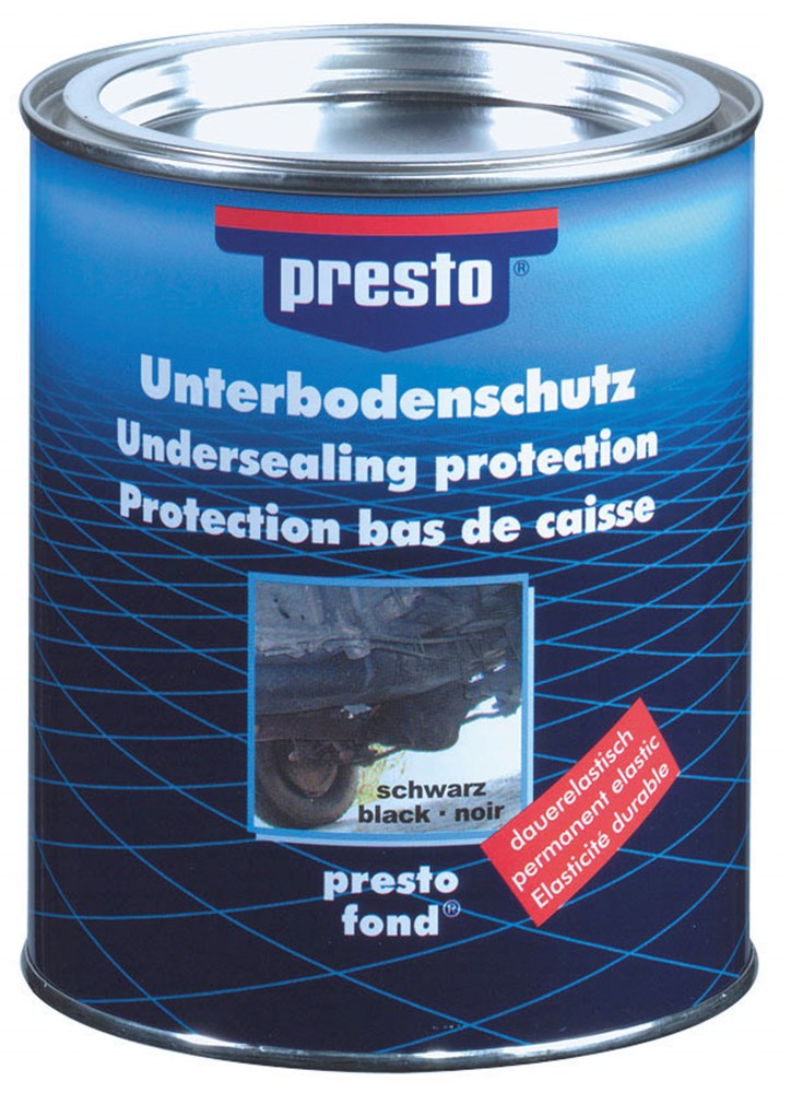 Contacteer onsPresto bitumen vormt een taaie, elastische, duurzame verzegeling op de onderkant van machines en voertuigen en wielkasten van alle soorten motorvoertuigen. Het beschermt de onderkant tegen mechanische en chemische invloeden zoals steenslag, strooizout, water, roest en weersomstandigheden. De thixotropische eigenschappen van presto chassisbescherming maken het toepassen in dikke lagen mogelijk zonder doorlopen van kleuren. Toepassingsgebieden: carrosserie, werkplaatsen, omnibus bouw, huis & hobby.