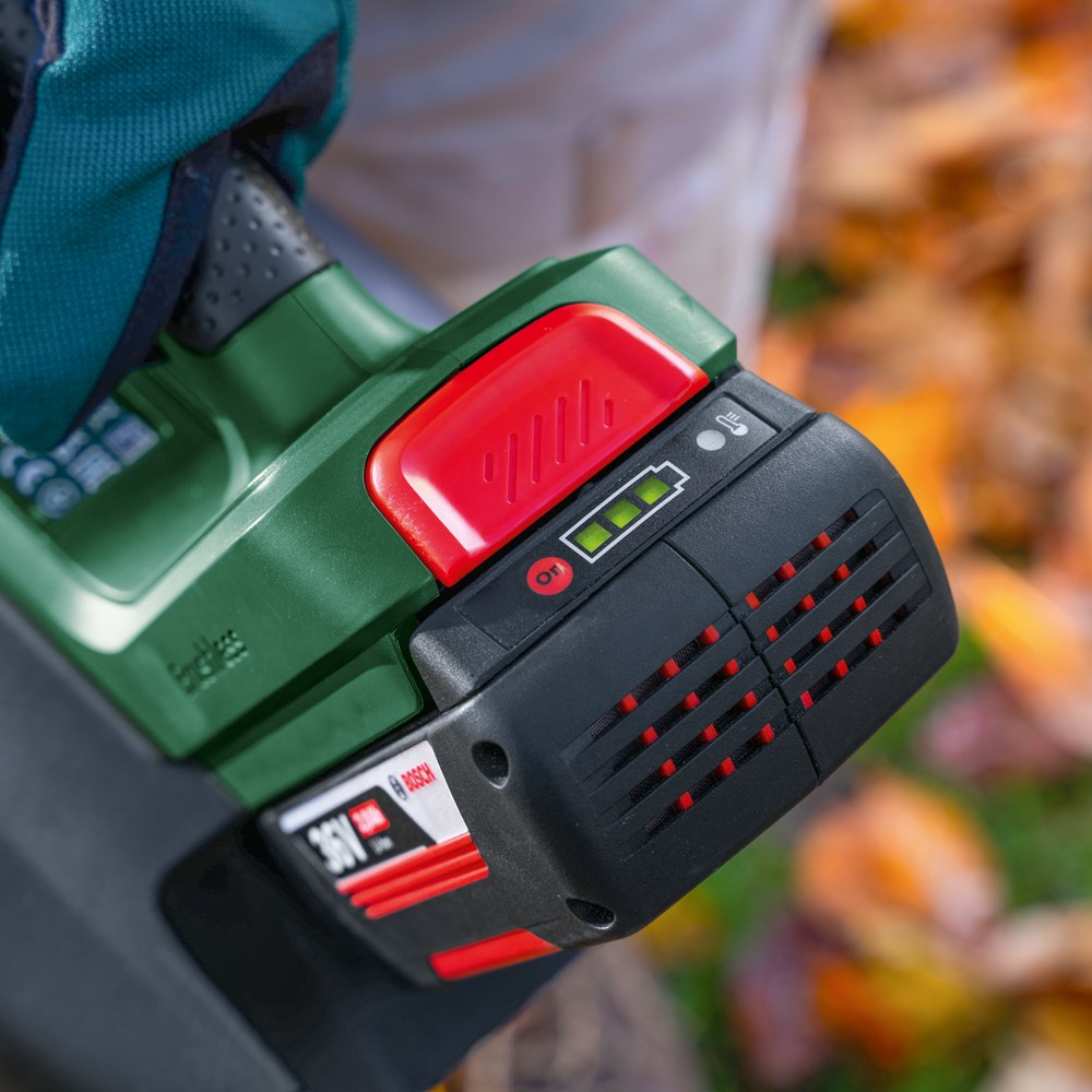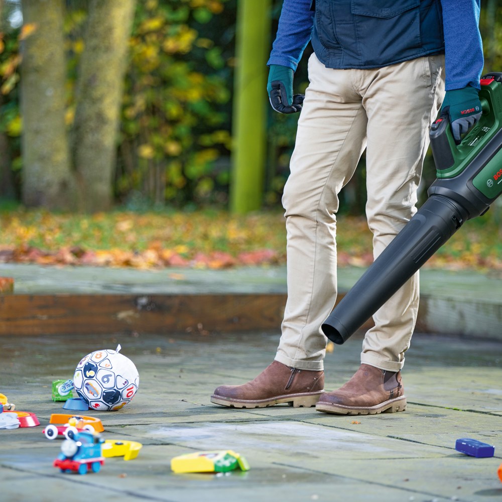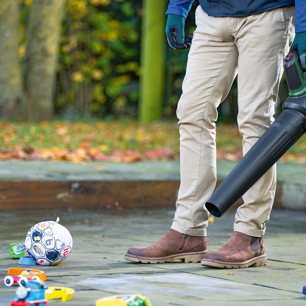 Krachtige, emissieloze prestaties voor zware opruimklussen in de tuin Klaar grote opruimklussen snel en gemakkelijk met de krachtige AdvancedLeafBlower 36V-750 op accu. De duurzame borstelloze motor en Syneon Technology leveren het benodigde vermogen: natte bladeren, gemaaid gras en zelfs speelgoed worden bliksemsnel van verharde en met gras begroeide oppervlakken geblazen. De knop voor variabel toerental zorgt voor flexibiliteit bij elke opruimklus. Deze levert een krachtige 750 m³/h op grote oppervlakken en bij hardnekkig vuil, terwijl een laag tot gemiddeld toerental zorgt voor bevredigende resultaten met een langere looptijd en minder lawaai, zodat ook de buren blij blijven. Grote prestaties worden geëvenaard door comfort: dit lichte gereedschap is goed uitgebalanceerd, zodat belasting en armen en polsen tot een minimum wordt beperkt.