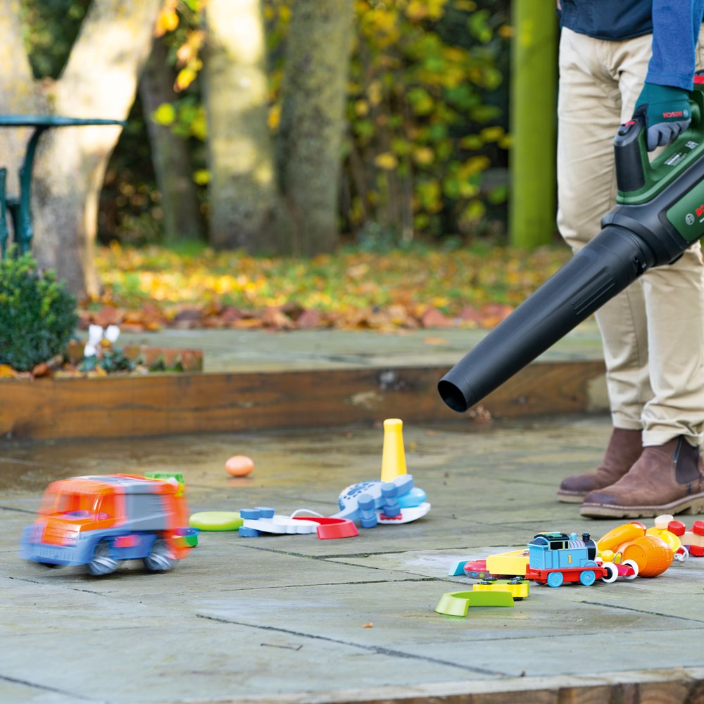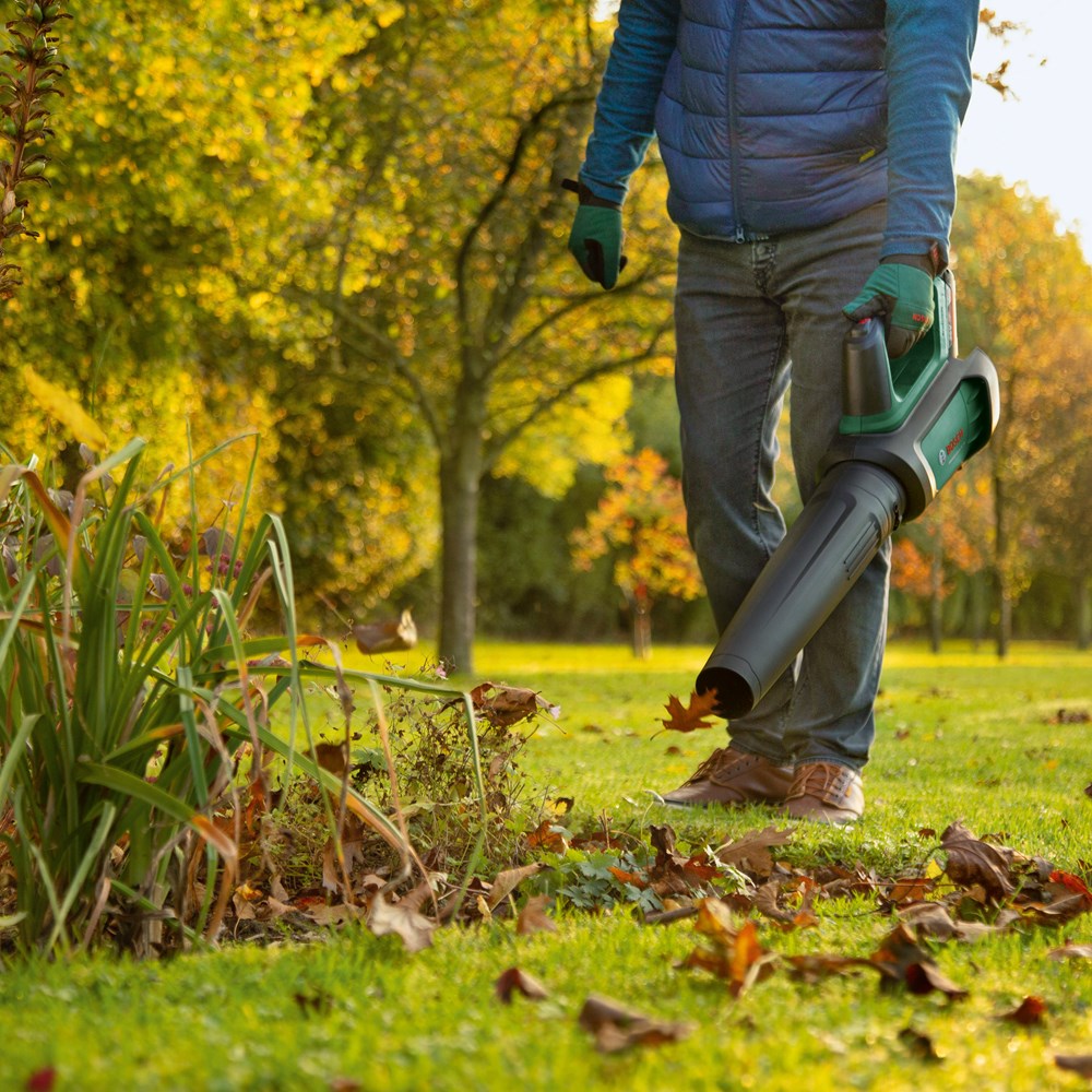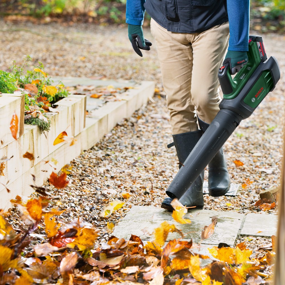 Krachtige, emissieloze prestaties voor zware opruimklussen in de tuin Klaar grote opruimklussen snel en gemakkelijk met de krachtige AdvancedLeafBlower 36V-750 op accu. De duurzame borstelloze motor en Syneon Technology leveren het benodigde vermogen: natte bladeren, gemaaid gras en zelfs speelgoed worden bliksemsnel van verharde en met gras begroeide oppervlakken geblazen. De knop voor variabel toerental zorgt voor flexibiliteit bij elke opruimklus. Deze levert een krachtige 750 m³/h op grote oppervlakken en bij hardnekkig vuil, terwijl een laag tot gemiddeld toerental zorgt voor bevredigende resultaten met een langere looptijd en minder lawaai, zodat ook de buren blij blijven. Grote prestaties worden geëvenaard door comfort: dit lichte gereedschap is goed uitgebalanceerd, zodat belasting en armen en polsen tot een minimum wordt beperkt.