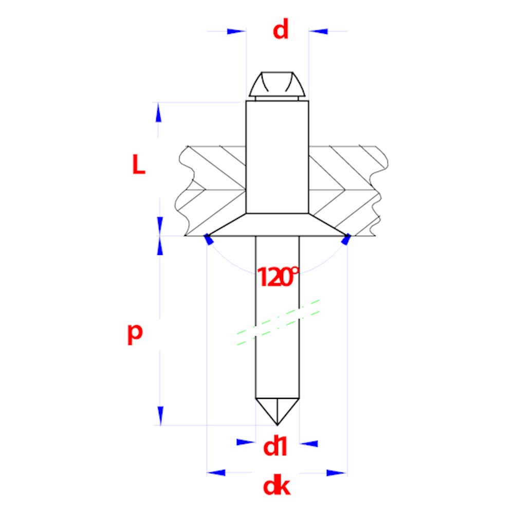 Contacteer onsPGB-FASTENERS Artikelnummer: 07337BR04003200063 BLINDKLINKNAGEL D.7337B VK 3.20X6 A2/A2